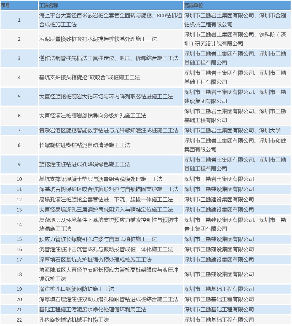 工勘集團共申報省級工法28項,22項順利通過評審。其中,深圳市工勘巖土集團有限公司獲評10項、深圳市工勘建設(shè)集團有限公司獲評8項、深圳市工勘基礎(chǔ)工程有限公司獲評4項。此次集團總獲評數(shù)量在申報企業(yè)中居廣東省第一、深圳市第一,申報通過率高達78.6%,遠超全省30.1%的平均通過率,彰顯了工勘集團在巖土工程領(lǐng)域的深厚創(chuàng)新實力和技術(shù)能力。