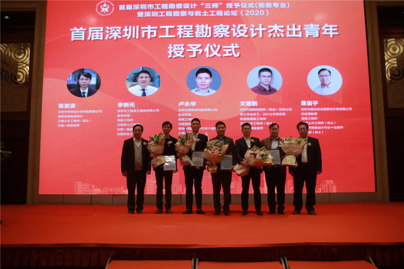 工勘巖土集團副總經(jīng)理李新元(左三)獲評為“首屆深圳市工程勘察設(shè)計杰出青年”